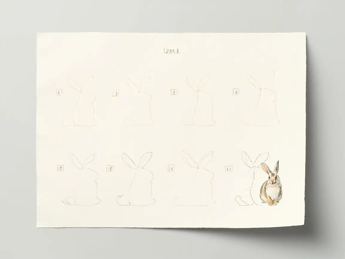 Nie bój się używać wielu delikatnych linii pomocniczych – możesz je później wymazać. Króliki w różnych pozycjach wymagają indywidualnego podejścia – siedzący będzie miał bardziej zaokrąglony tułów niż stojący. Warto ćwiczyć różne ujęcia, by lepiej zrozumieć ich anatomię.